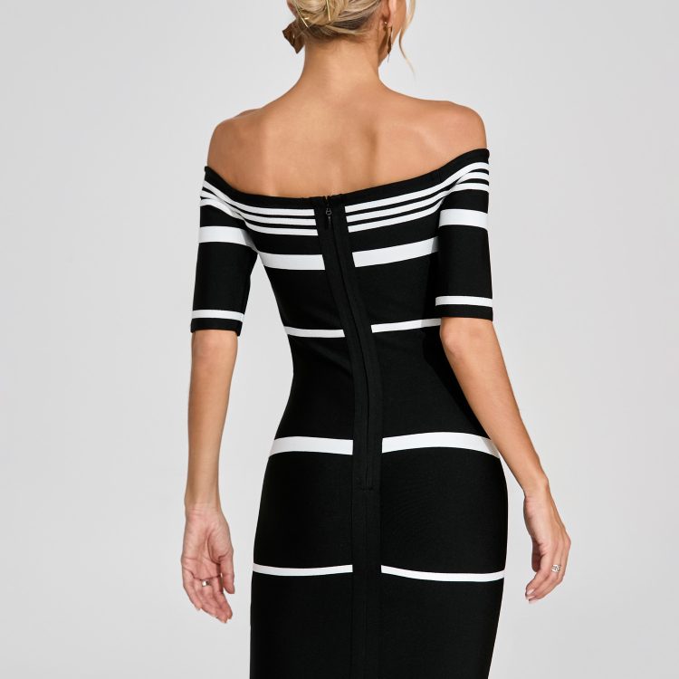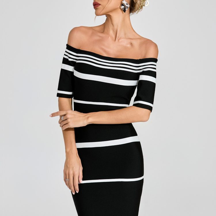 Gregary Black Striped Off Shoulder Dress